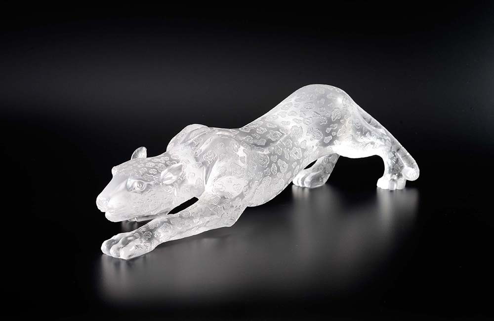 Customizable handmade art glass liuli white lifelike leopard
