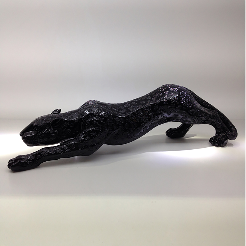 HandMade Liuli crystal crafts Lifelike black Leopard