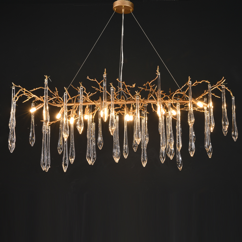 Crystal Copper Water Glass chandelier Long Clear Lamps